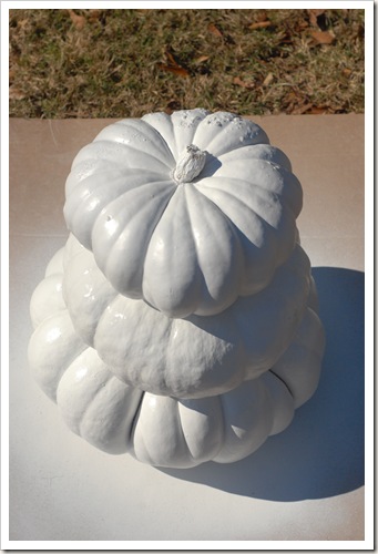 Then I spray painted all my pumpkins white. It was fast and easy. I only had primer spray paint, so that is what I used.